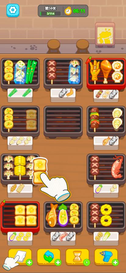 游戏里还有各种各样的道具,可以帮助你更好地完成关卡。比如,有的道具可以帮你消除盘子上的障碍,有的道具可以帮你快速消除烤串。