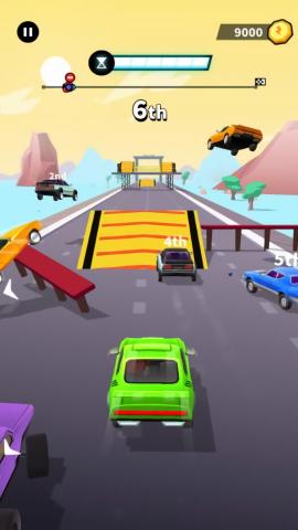 2、赛道上充满障碍和对手,需要灵活躲避或直接撞飞,展现驾驶技巧。