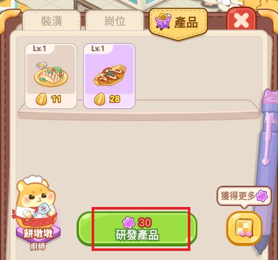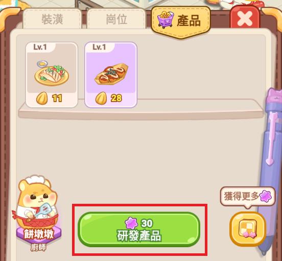 7、获得足够的研究点之后就可以研发新菜品提升产品评分。