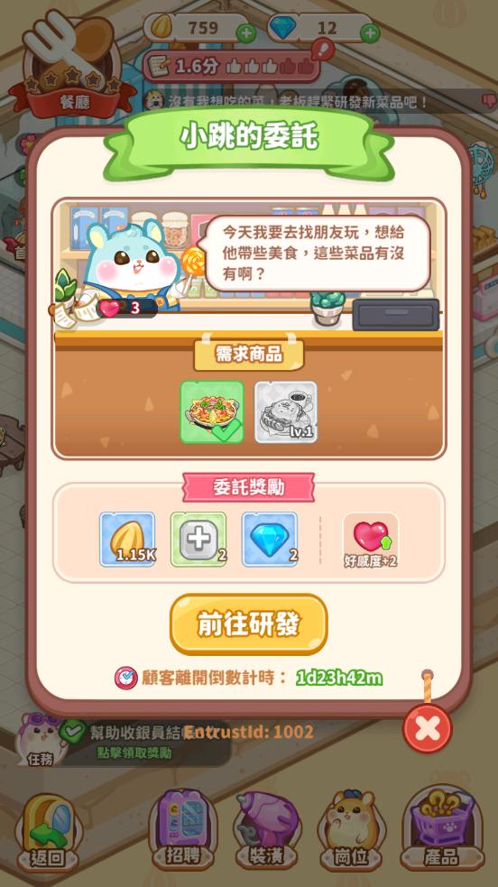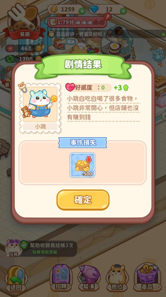 员工管理:玩家可以招募仓鼠员工来协助经营店铺,通过合理分配员工,提高经营效率。