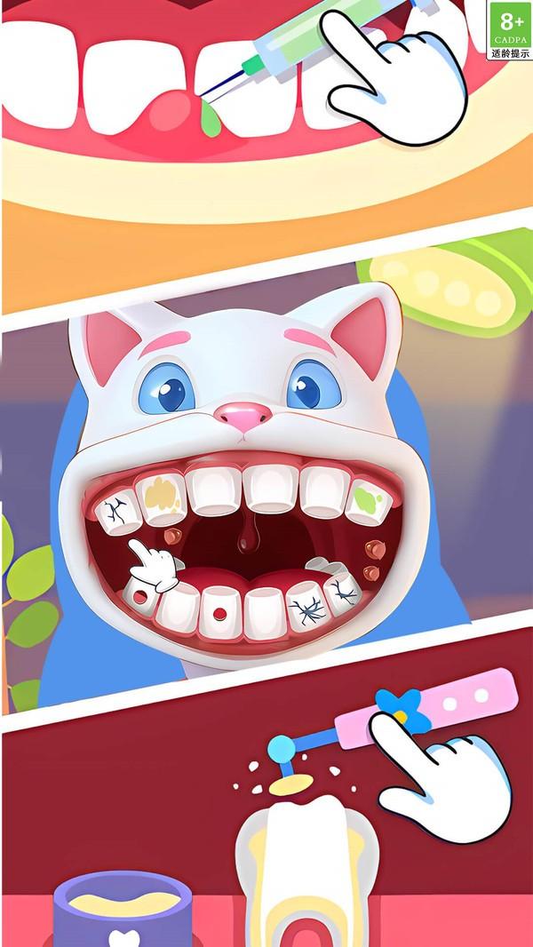 2.除了基础的牙齿清洁,游戏还设置了更多挑战关卡,如治疗蛀牙、修补牙齿、预防牙周病等