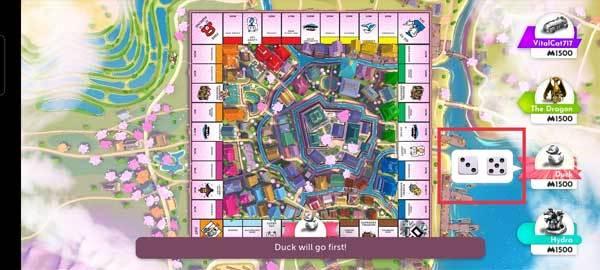 6、下面就是正式开始游戏了,它主要就是看谁能坚持到最后,从而让其他对手都破产。起始的时候每一位玩家都会选择一个标记,每个人手上都会有一定数量的资金。而在自己的回合里就是掷骰子,两颗骰子一起掷数,上面数字掷几走几,根据玩家所走到的位置来决定是否赔钱赚钱,像遇到无主的土地玩家可以选择购买或者拍卖。