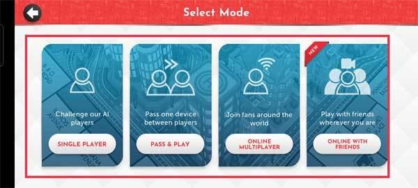 1、打开游戏,点击中间的“play”按钮开始新游戏。下面选择游戏模式,包含单人游戏、线下模式、在线多人游戏以及与朋友在线游玩模式,新玩家可以先玩单人游戏熟悉规则。