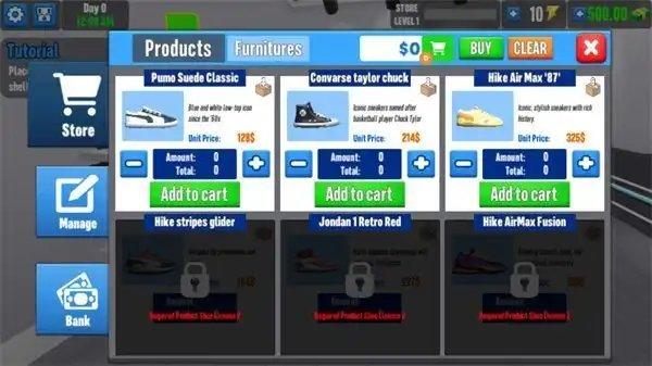 鞋店经理s是一款非常不错的鞋店经营游戏。在这里你需要卖出更多的鞋子,扩大你的业务规模,获得更多的收入,赚取可观的利润。游戏玩法 开展更多的业务是非常有趣的。游戏的模拟非常刺激。如果您有兴趣,就来本站下载安装并尝试一下吧。