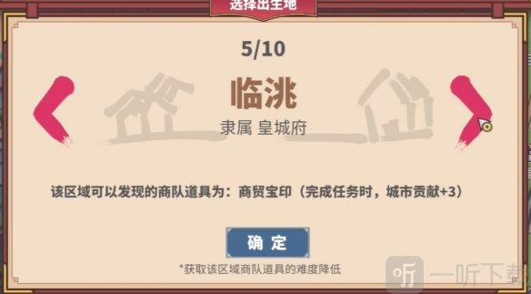 不同的开局地点会由不同的可能发现道具,最推荐的开局根据地还是皇城府的临洮,道具商贸宝印是目前最强的商队道具,任务完成+3贡献能够让前期解锁商品的效率大幅提升。