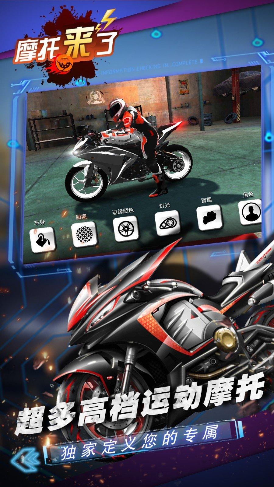 游戏提供了多种炫酷、拉风的摩托车供玩家选择,玩家还可以自由设计改装,打造专属座驾。