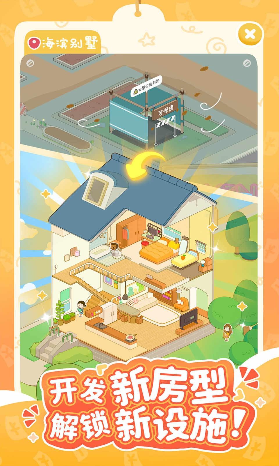 1、为您带来独特的商业模拟游戏,持续经营自己的住房,帮助您快速实现收租、在线改造各种住房环境。