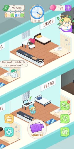 Q版的形象设计,玩家将自己的空闲的房子出租,赚取大量的金币。
