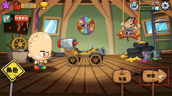 1、双击打开大头赛车游戏,如下图,点击地图;