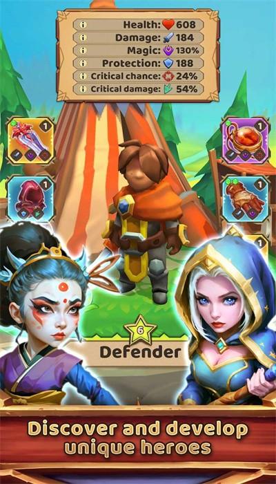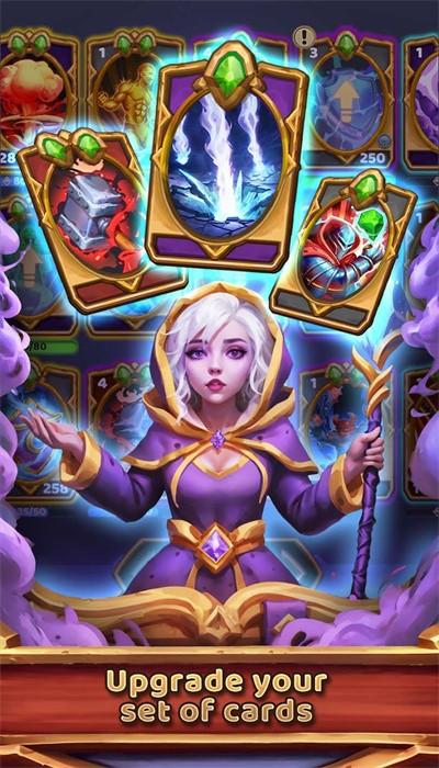 3、收集强化卡牌,合理分配资源升级英雄,提高战斗力,策略性玩法。