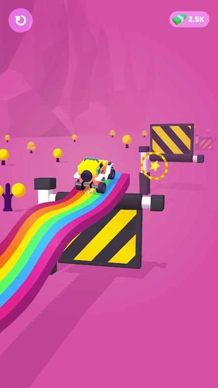 3、可以解锁不同类型的车辆,也能自由绘制独特的道路设计。