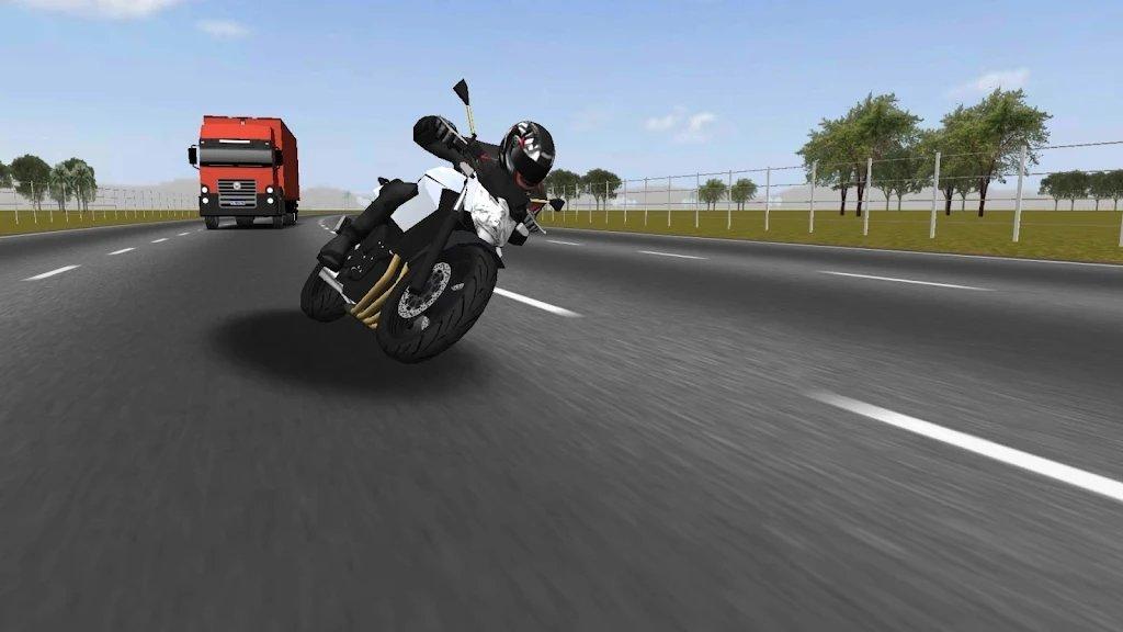 轻松的操作着右侧的把手可通过点击或长按来增加摩托车的行驶速度。激情飞驰。