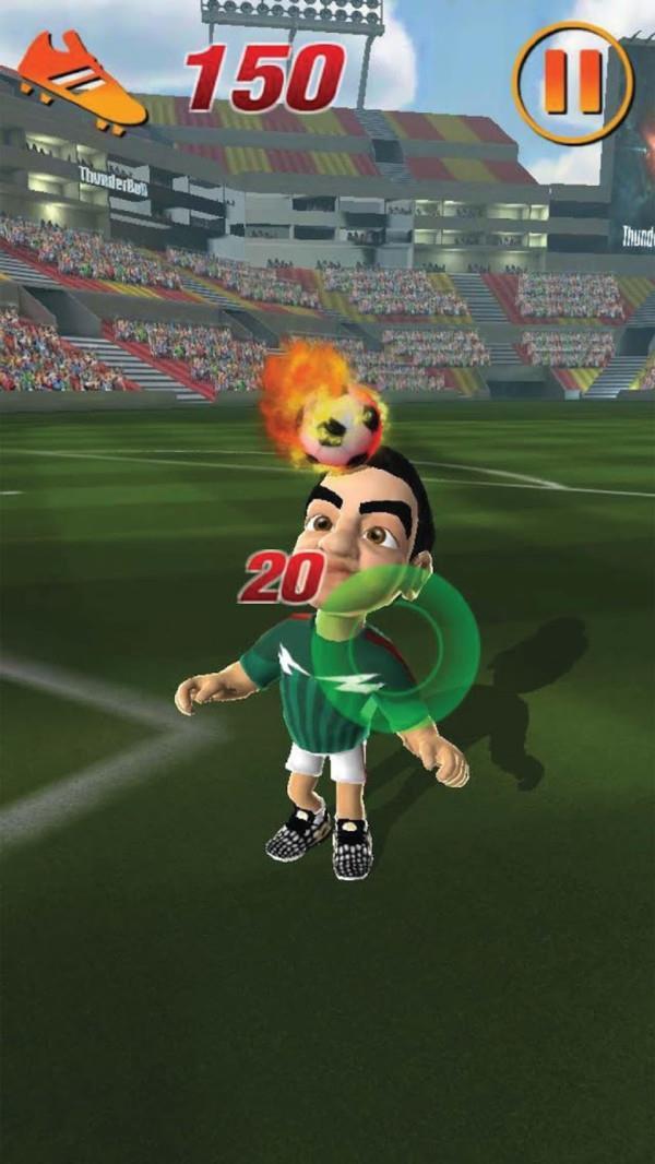 2、操控卡通人物,展示出各种酷炫的足球技巧和花式表演。