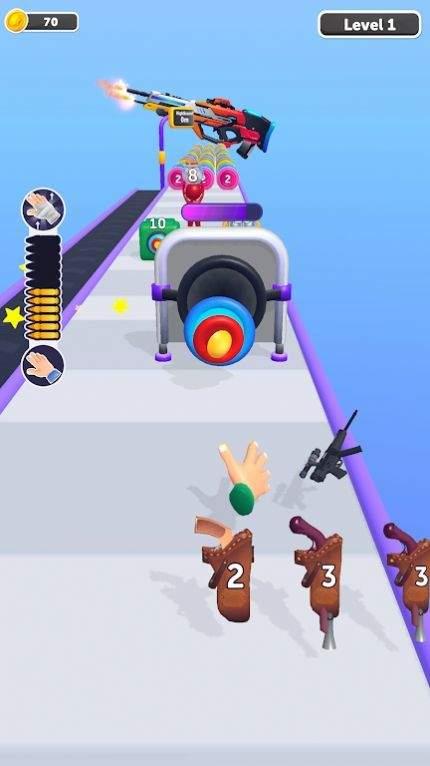 1、轻松有趣的跑酷过关,在路上不时搜集更多的道具,晋级本人的配备,增加本人的数量,击败强大的敌人。