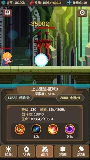 2.闯关冒险战斗游戏,非常有诚意的放置RPG,让整个游戏非常的轻松;