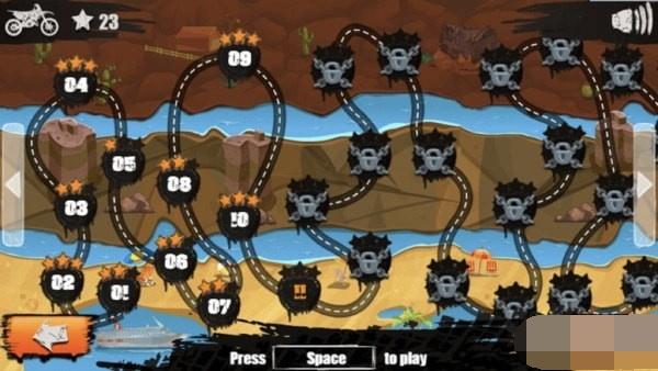 游戏里的关卡数量众多,每一个游戏关卡都有着独特的设计,能够让玩家体验到驾驶摩托车所带来的乐趣,游戏里还有许多障碍等待着玩家,玩家需要操控自己的摩托车跨越游戏里的障碍,以最短的时间到达游戏里的终点。
