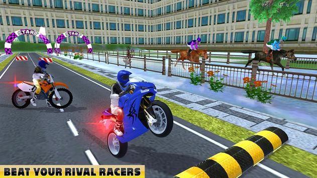 马与摩托终极比赛是一个特别刺激的赛车游戏,你仍然需要骑着马去跨栏。游戏中有很多比赛模式和很多角点,有大量的游戏性内容。喜欢的朋友快来下载安装吧!