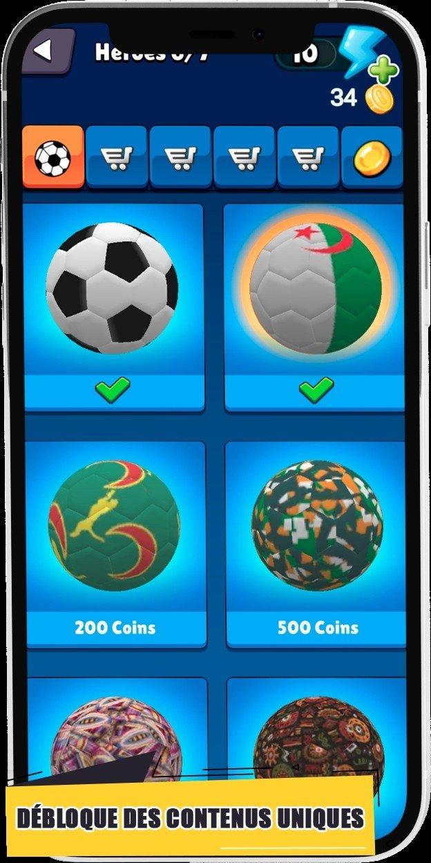 获得游戏金币在线解锁其他的明星球员和足球皮肤。