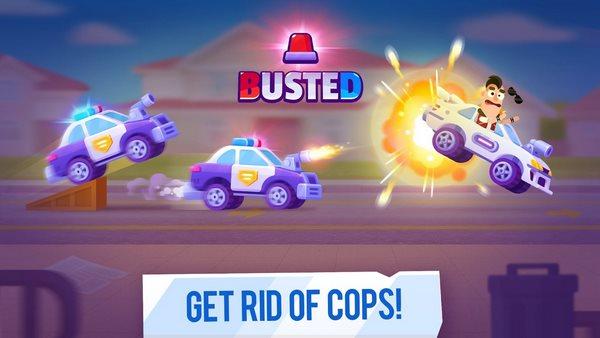 玩家需要控制各式各样的卡通人物形象驾驶车辆逃避对手或者警车的追击,还可以用多种武器摧毁它们,也可以用护盾和加速躲避对手或者警车的攻击,过关的奖励可以用于升级新车辆。喜欢这款游戏的玩家可以下载玩玩这款魔性十足的游戏。