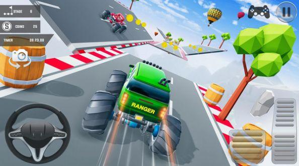 玩家需要在规定的时间内完成赛道,并在过程中尽可能地获取金币和道具,用来提升车辆属性和技能。