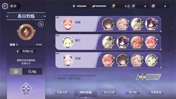 4、NPC对战则是PVE,当玩家不想与其他玩家进行战斗时,也可以选择与预设的NPC队伍进行对战。NPC对战将为玩家匹配与账号等级一致的NPC队伍,且该模式下的对战将同样可以获得兑换奖励所需的代币,但无论输赢都无法获得竞技积分。
