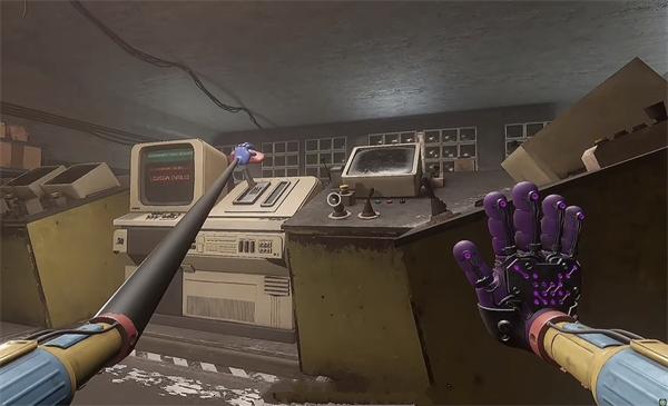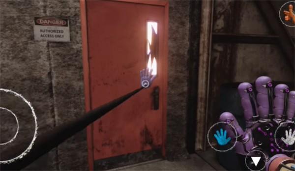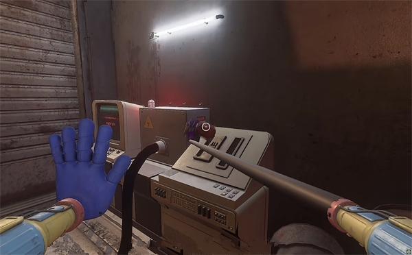 6、开门之后走里面还会有一个开关给他拉下来,往前走进去用蓝色手臂互动一下前面的开关,这里要触发三个开关才能有电流打通出口