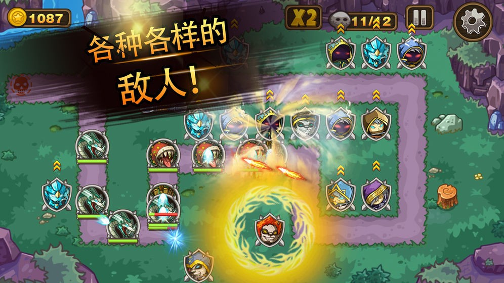 一款中规中矩的塔防游戏,在敌人猛烈进攻到来之前合理搭配炮塔和英雄,才能有效的化解危机,各种不同的敌人也需要你选择可以克制的武器,不断杀敌获得金币来解锁更多防御塔吧!为了城堡而战!