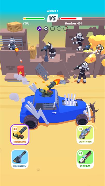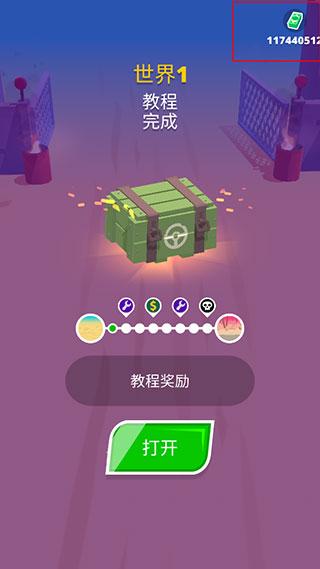 3、消灭敌人后,完成新手教程,获得金币奖励,用以购买新车和填充车库。