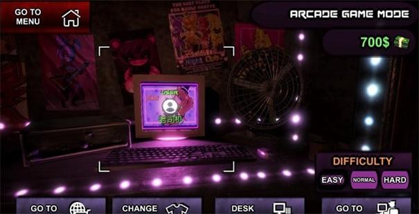 从左往右分别是:商店、服装、桌面摆设、开始游戏。开始游戏上方就是难易度