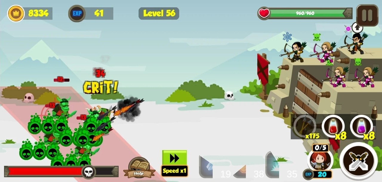 这款游戏有着相当丰富的关卡挑战,随着不断地通关,关卡的难度也会越来越难,为你的弓箭手进行升级,在战斗中抵御敌人的袭击,保护城堡。