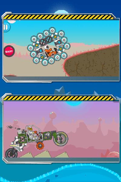 卡通又偏3d的结合组成的游戏画面,给人一种童话世界的美感,你可以在月球上腾空飞跃,你也可以在地球沙漠上抓地奔跑。
