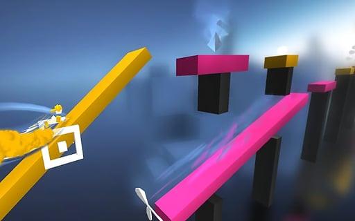 3、极简风的跑酷游戏,跑道便是一些简略的长方体,或规矩或随意的设置在主角的行进道路上。