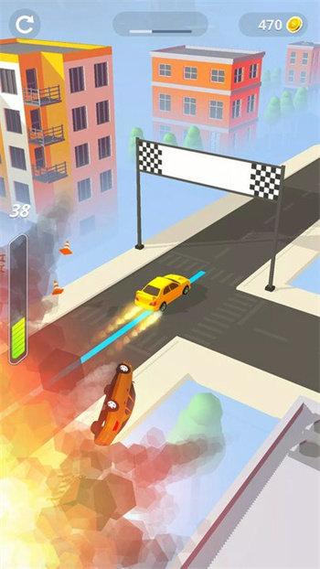 刚开始速度比较缓慢,随着关卡的开启,车辆行驶的速度会越来越快,玩家需要及时改变路线。