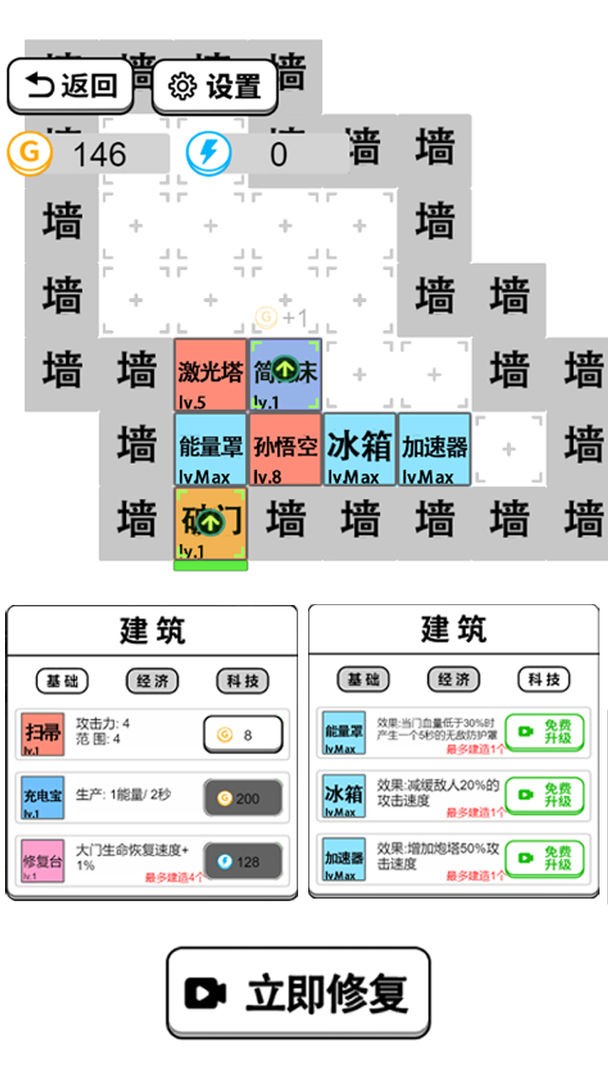 1、这里是由文字组成的塔防对战游戏,玩家在这里的任务就是躺平玩游戏,但是总有一些亲戚叫你起来,所以你要利用文字来进行脑补剧情,最终顺利的过关。