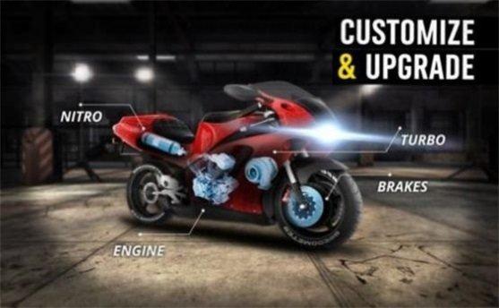 2.挑选出自己比较喜欢的摩托车,参与游戏当中的竞速比赛挑战。