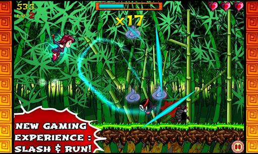 1、这款游戏是酷跑与切水果的结合,你奔跑着切碎敌方忍者;