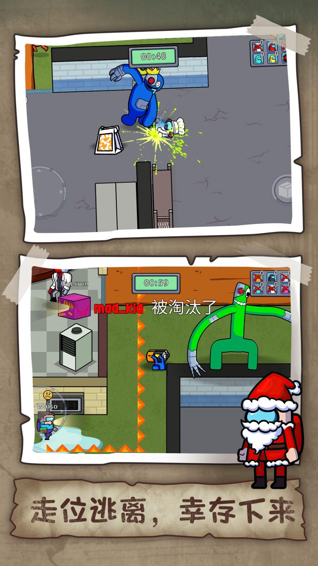 密室主题的逃生手机游戏,这是一个彩虹游乐园,数位不同彩虹怪物不断游荡,小心不要被它们发现。彩虹朋友太空杀游戏主打解谜和逃生等玩法,玩家可以在游乐园里不断寻找线索,完成各种精彩的闯关冒险,生存五天,完成五个不同的任务就可以成功逃生了。