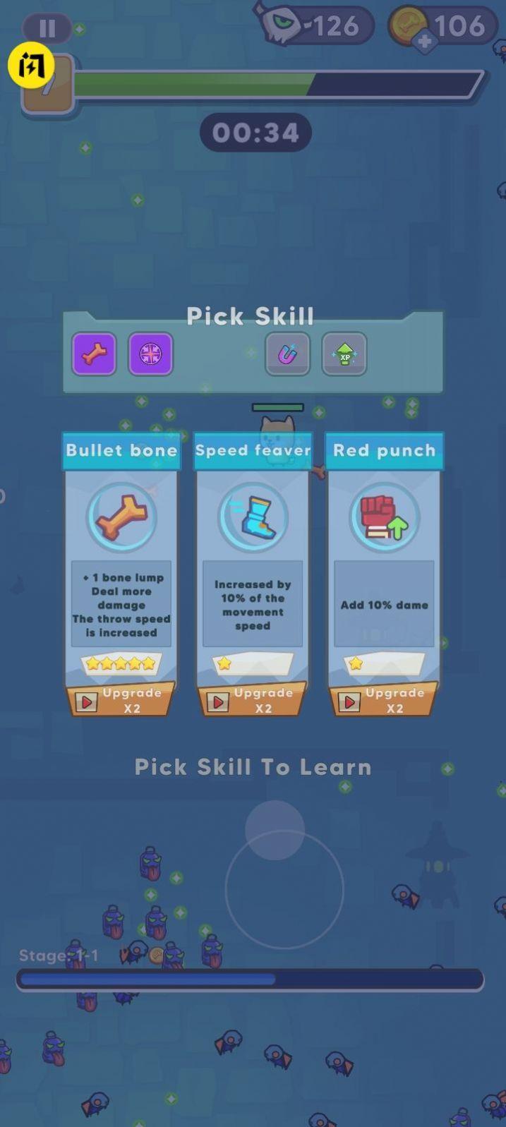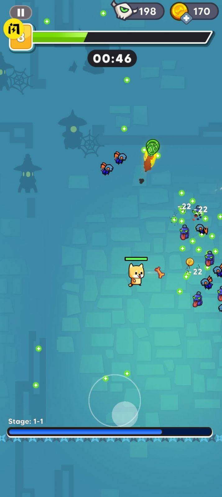 1、拿起武器对抗所有的蜜蜂敌人,这个萌狗特攻队还是经典的割草玩法模式;