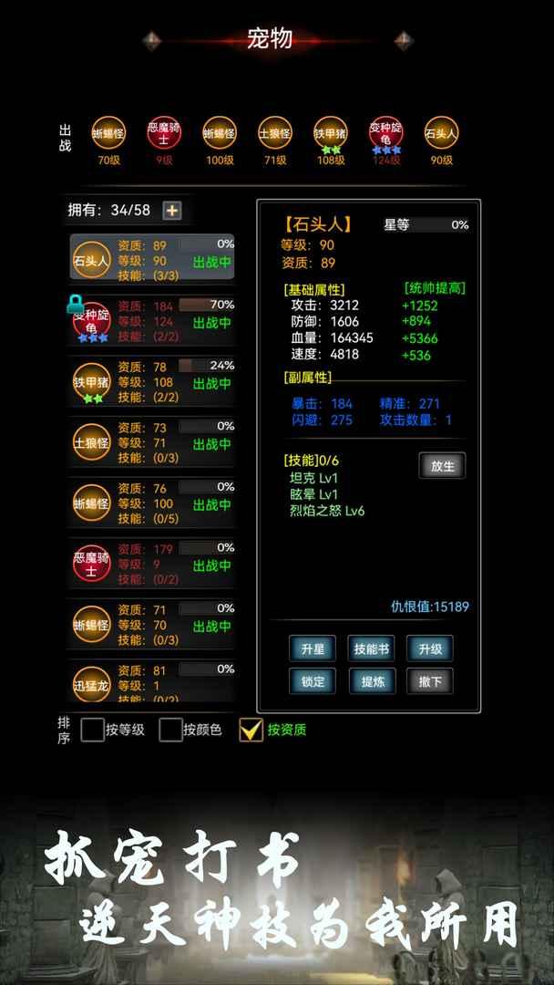 1.先说说宠物,宠物的话不是看颜色。是看资质,资质越高越好,资质越高基础属性越高,升级加成的属性也高。目前看到别人最高72资质,比较看脸,我最好的是绿色66资质。技能的话可以用技能书学,技能书可以在宠物身上提炼。总体来资源都可以获取