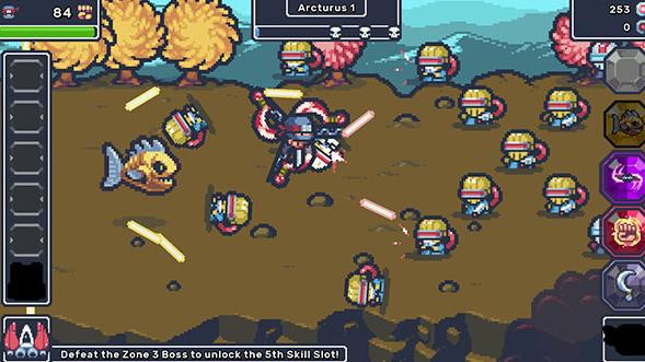 1、节奏紧凑的战斗场景,不断地关卡推进,众多的武器选择,不同的技能搭配。
