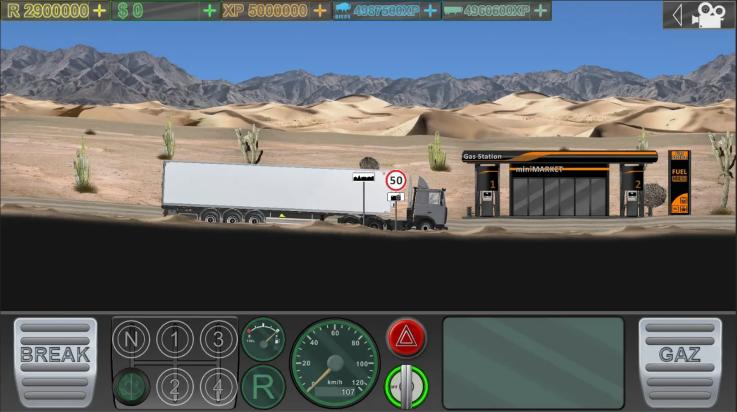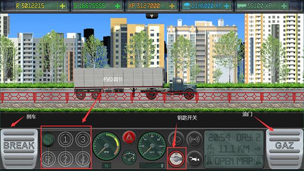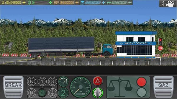 4、单击游戏中的左右按钮以掌握卡车的移动、你自己的卡车也可以换档,您可以自由解锁不同的卡车并在不同的游戏地图中驾驶;