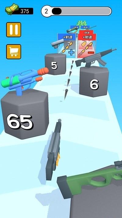 3、多样的挑战关卡在游戏里带给玩家,消灭敌人获得的金币能够不断升级你手中的枪械武器。