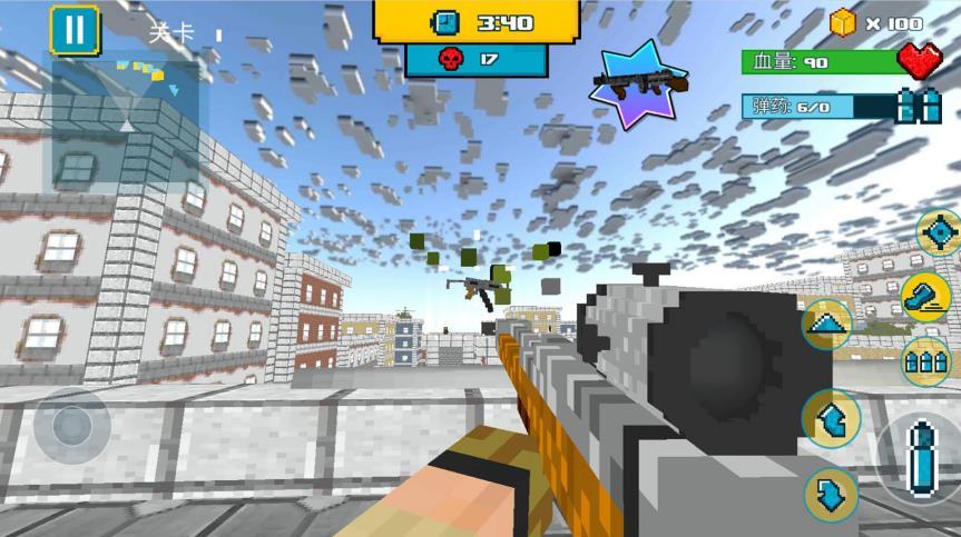 方块世界大作战是一款都市背景的像素风格战争游戏,身为大兵你需要抢夺敌人的装备、搜寻地上的物资,消灭所有的敌人!游戏中分为两大模式,普通模式中每关都有三种不同难度,根据难度的不同,需要剿灭的敌人数量也不同;狙击防卫模式中,你将用一把狙击枪,在高地防卫自己的据点,千万小心不要让敌人接近!