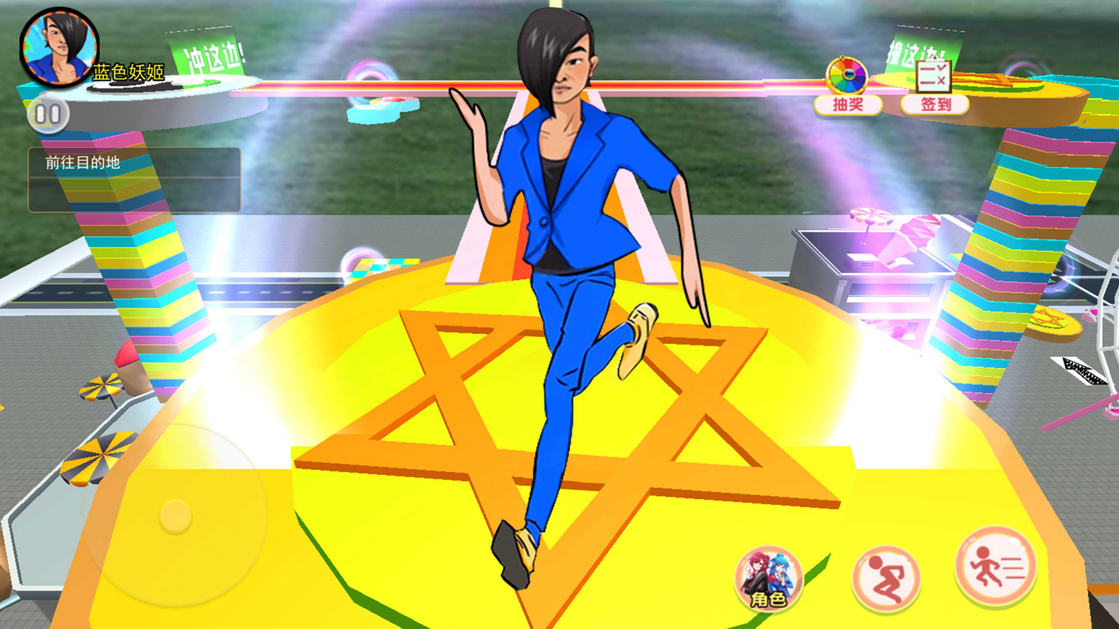 2、换上喜欢的服装,佩戴上需要的道具,就随时可以极速冲刺突破重重障碍了;