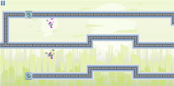 1、点击屏幕任何位置即可翻转重力帮助你控制的小人躲避障碍物;