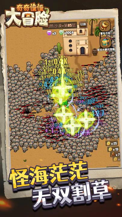 奇奇怪怪大冒险游戏是一款非常刺激的冒险游戏。游戏采用了放置挂机的游戏玩法,玩家可以随时控制角色进行冒险,这里有刺激的割草战斗,让玩家玩起来更加畅快,还可以不断升级自己,让自己变得更强大,更好的面对后面的挑战,非常的有趣。
