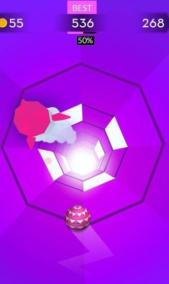 3、游戏里的画面场景非常的简约,玩家们只需要操控小球,在隧道中尽可能的生存下来。隧道会根据时间不断的变化,你永远不知道你下一步会出现什么障碍,所以需要集中注意力。