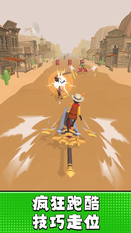 疯狂牛仔游戏是一款跑酷+套索割草小游戏,这里你将化身成为一名牛仔和其他的玩家一起同台竞技,你们都在各种各样的交通工具上前进跑酷,在这个过程中你可以利用好自己手中的套索阻碍别人,也可以勾住前方的物品或者是动物来进行操作。