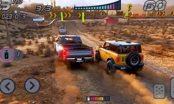 1、需要玩家控制越野车竞速,按照指定路线行进,尽快通过终点线;