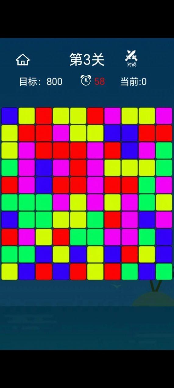1. 消消小方块中通过消除符合消除条件的方块,来通关解锁新关卡;